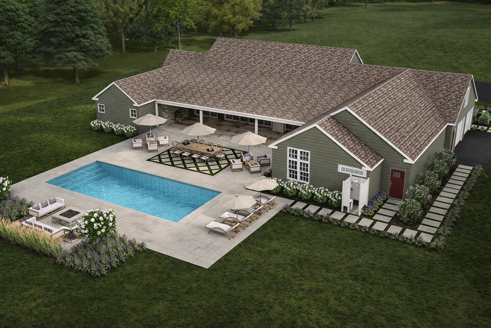 One recent project stands out in particular. Working with homeowners building a new house, LaPlace helped design an outdoor space centered around a pool intended for family gatherings.